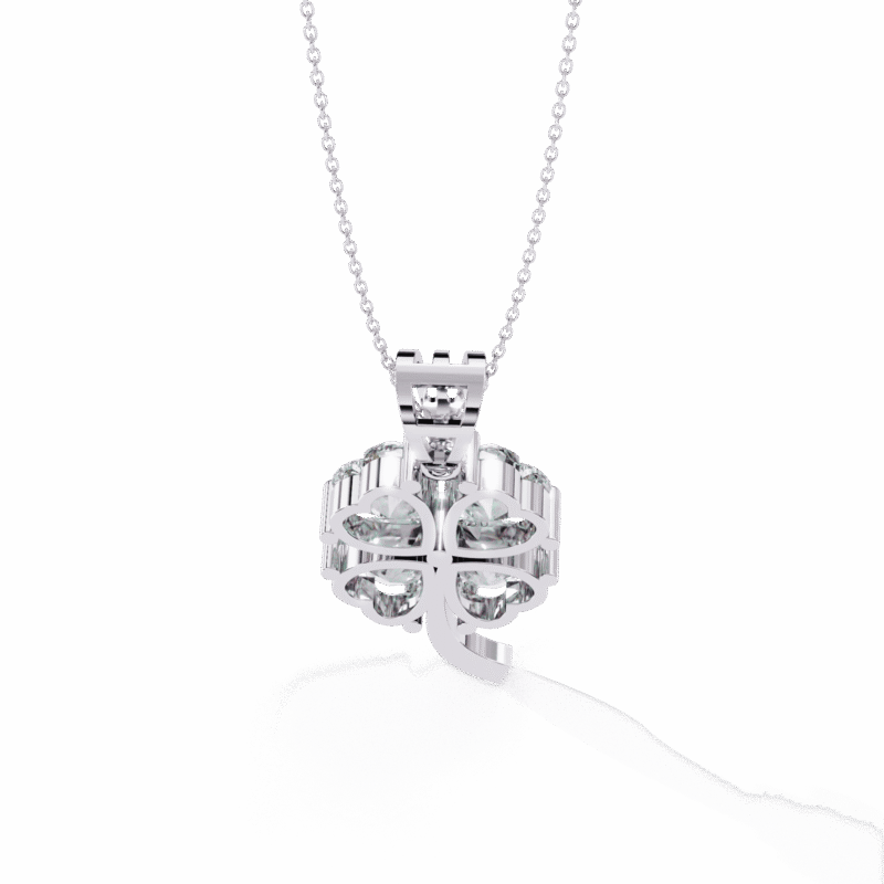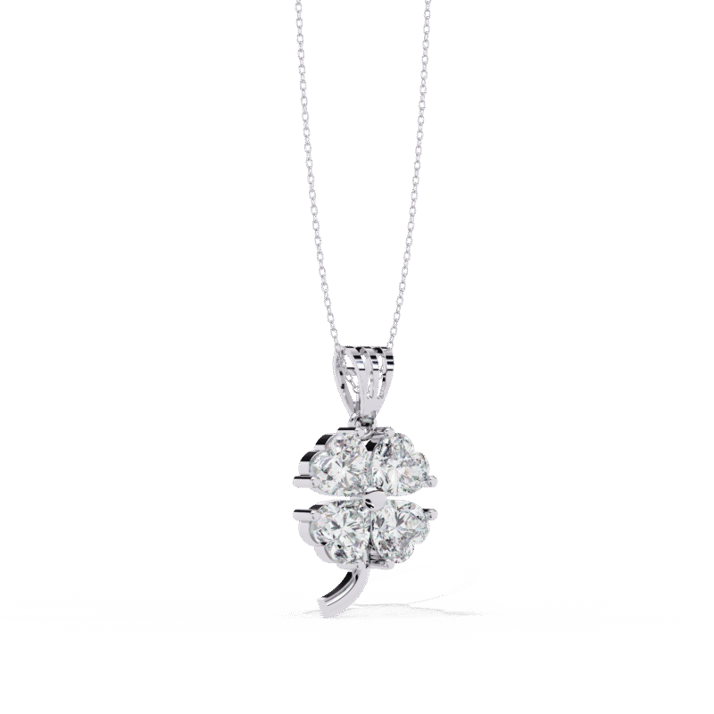 Charming Four-Leaf Clover Heart Diamond Pendant in 925 Silver – Nievaa Jewels