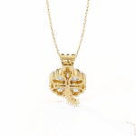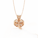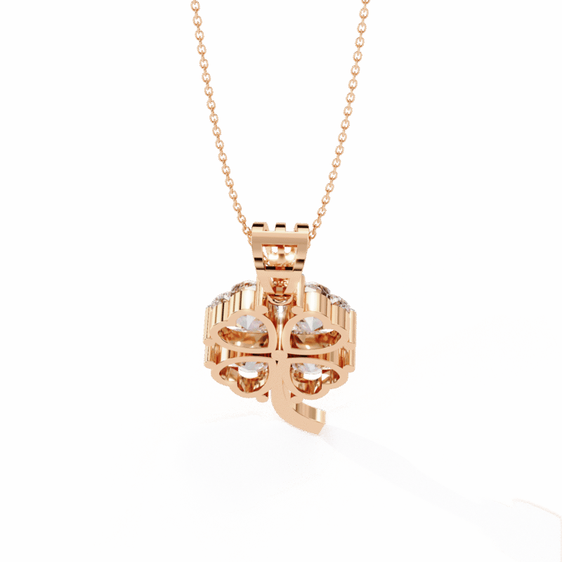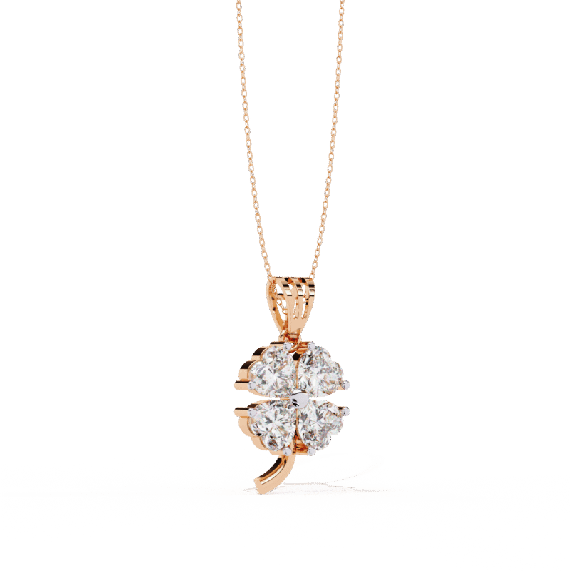 This exquisite pendant features a unique and deeply symbolic design, where four heart-shaped diamonds come together to create the iconic four-leaf clover silhouette.