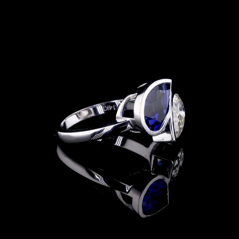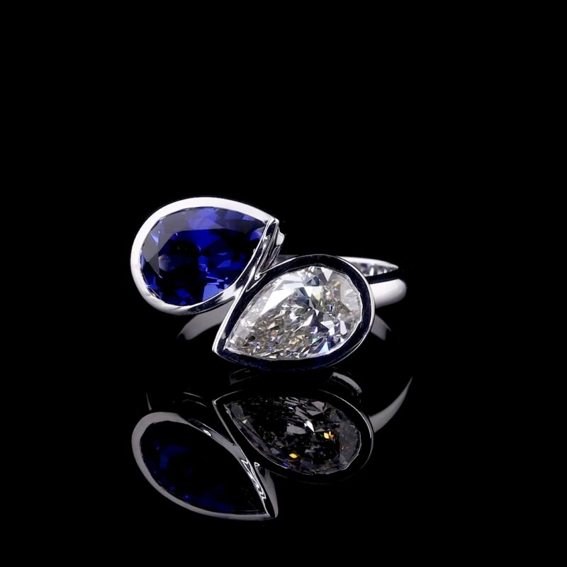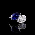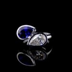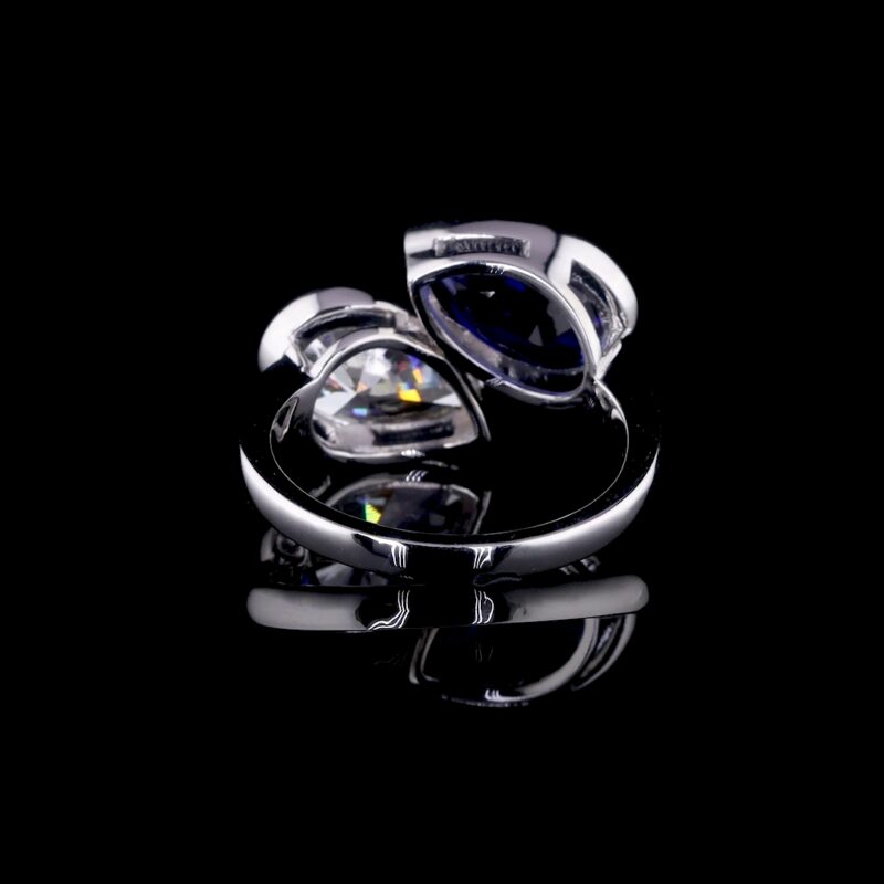The Dual Pear Lab Grown Diamond Bypass Ring with sapphire is not just jewelry—it is a story captured in gemstones and metal. Designed for those who believe love is more than a moment, this ring brings together two contrasting yet harmonious elements: the deep royal blue sapphire and the sparkling brilliance of a certified lab-grown diamond.
