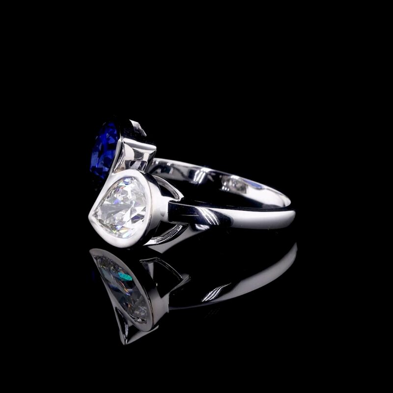 The bypass design is one of the most romantic and symbolic styles in fine jewelry. Its curves suggest movement, unity, and the idea of two lives moving in harmony. The combination of a sapphire and a diamond enhances this symbolism: the sapphire stands for loyalty, truth, and wisdom, while the diamond is forever associated with purity, strength, and eternal love. Together, they create a bond of tradition and innovation.