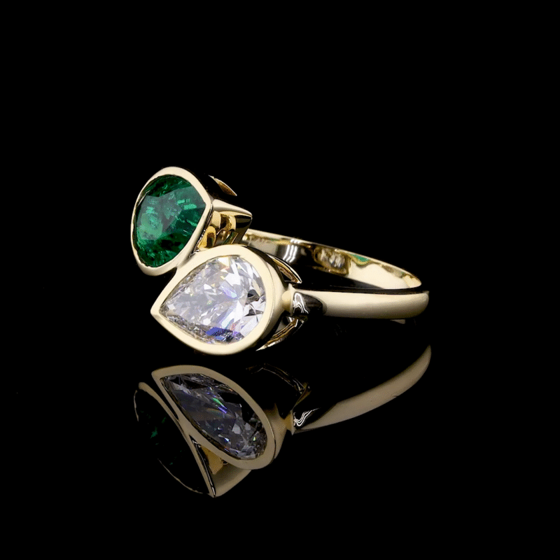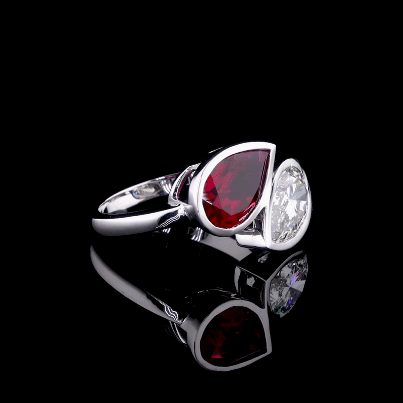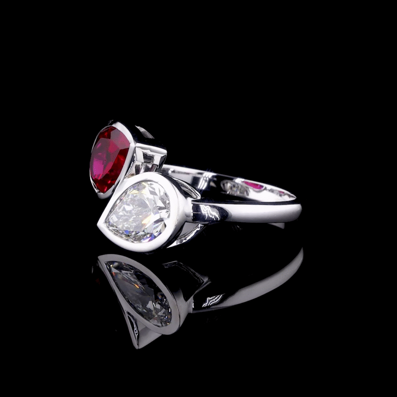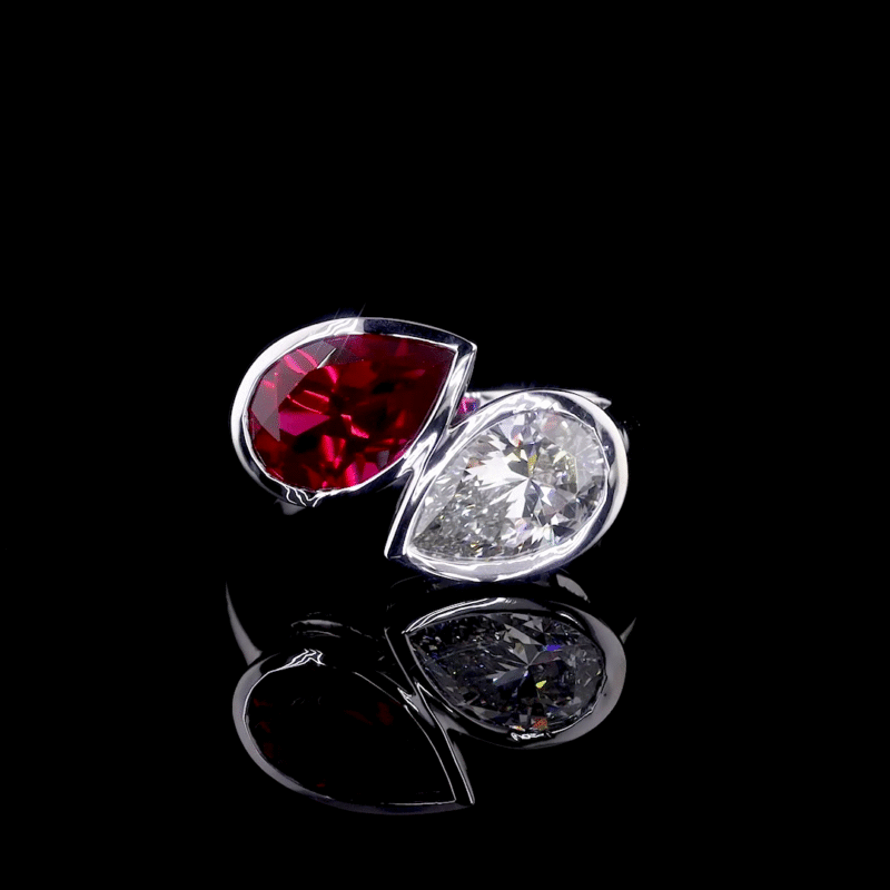 Each stone is pear-cut, chosen for its ability to reflect light with elegance and for the symbolic meaning it carries. The bypass setting—where two stones sweep past each other before joining—represents the journey of two individuals becoming one. This makes it a meaningful choice for engagements, anniversaries, or as a luxury keepsake that tells your story.