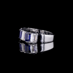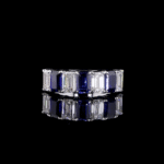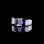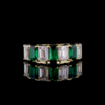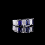 The design showcases an alternating sequence of magnificent, emerald-cut gemstones. Each natural ruby pulses with a deep, crimson fire, symbolizing passion, protection, and prosperity. Paired with them are pristine, certified lab-grown diamonds, whose cool, architectural brilliance creates a stunning contrast. The clean lines of the emerald cut give the band a sophisticated, Art Deco-inspired elegance, ensuring it remains a timeless treasure.