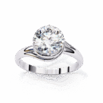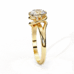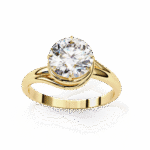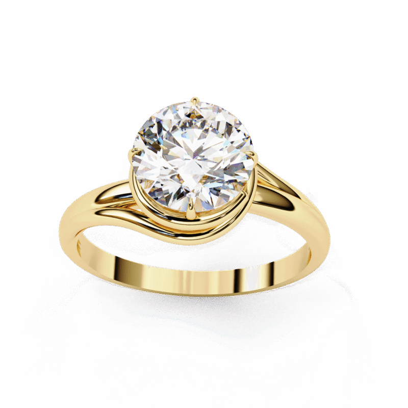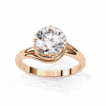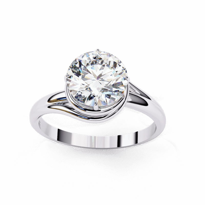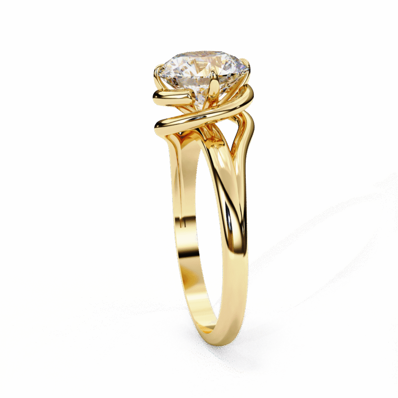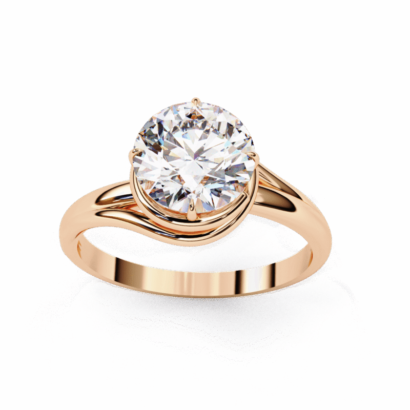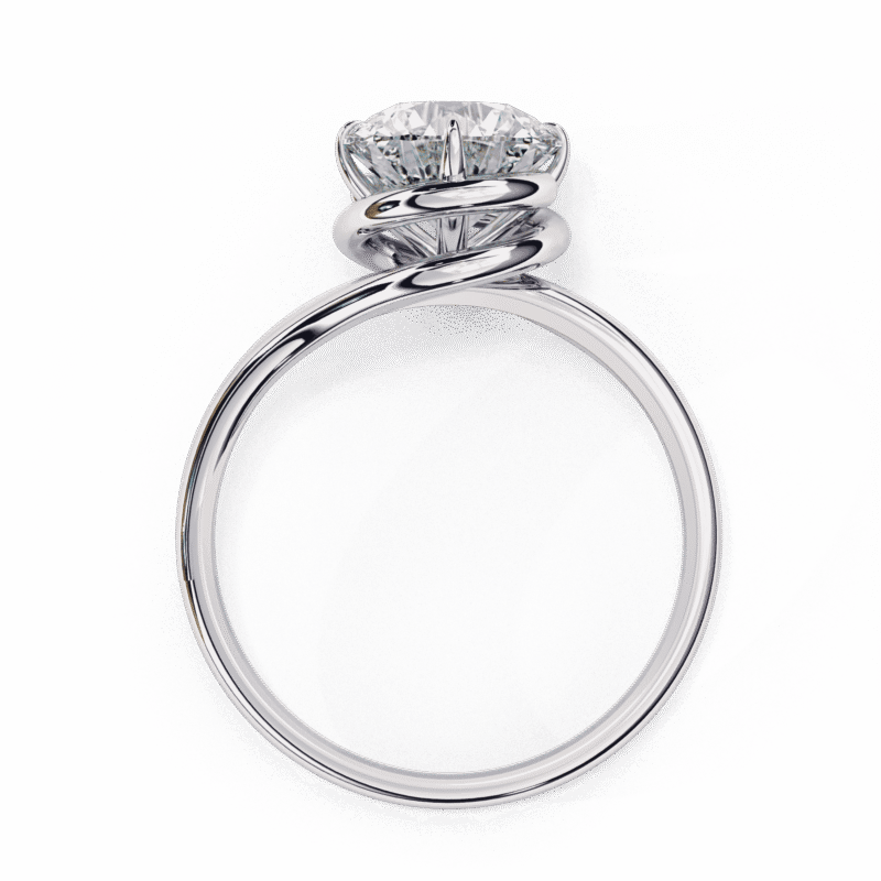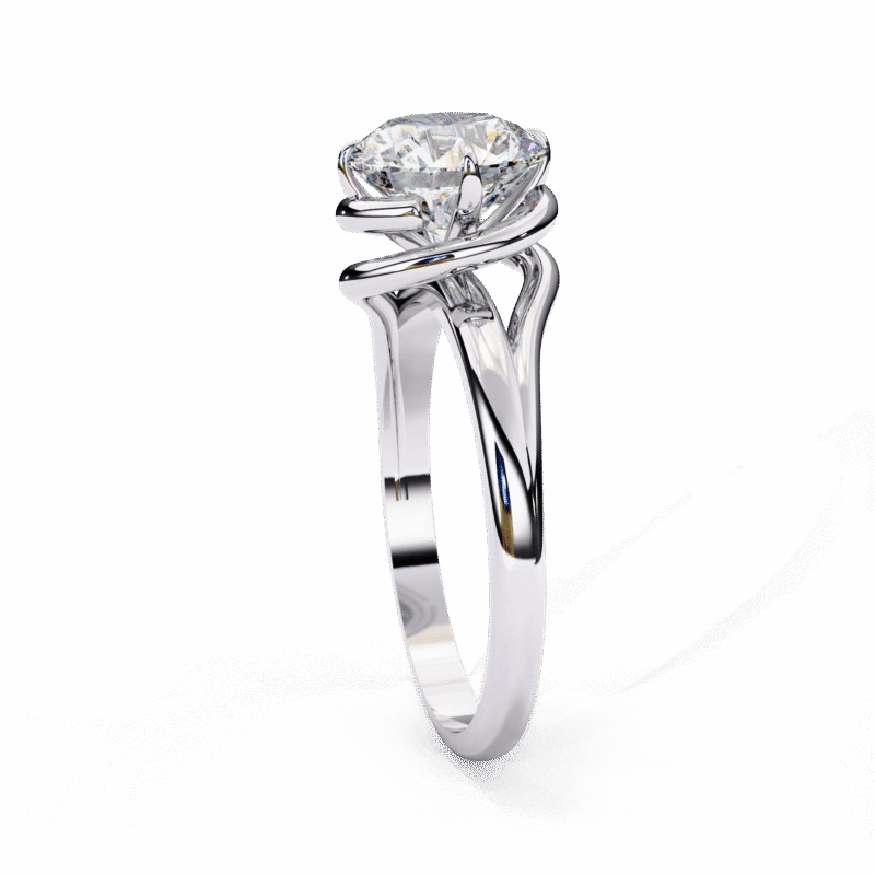 This ring features a unique, sculptural design that gives the classic solitaire a contemporary and artistic flair, securing the diamond in a graceful embrace.
