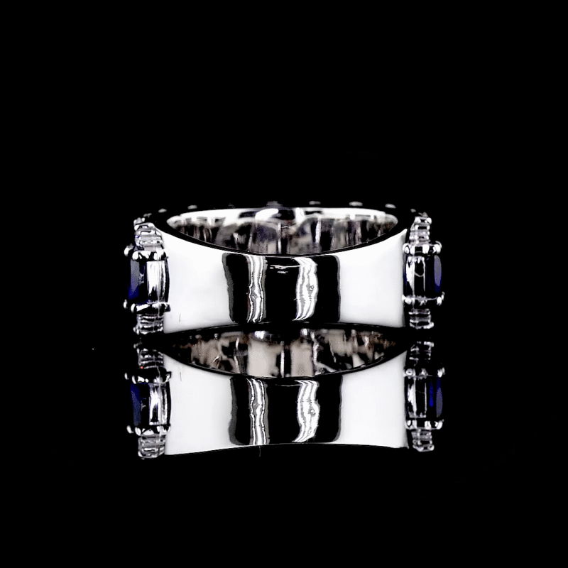 - Anniversary/Commitment: Sapphires traditionally symbolize loyalty, fidelity, and destiny. Paired with diamonds, this double row band lab grown diamond ring is the ultimate promise of everlasting love and an exceptional Ethical Sapphire Diamond Ring.