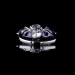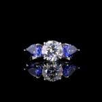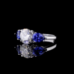 This classic three-stone design combines timeless elegance with a deeply romantic touch, ensuring it will be treasured for generations.