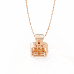 This contemporary pendant features an intricate and emotionally symbolic design, artfully blending three different diamond cuts for a unique and brilliant finish.